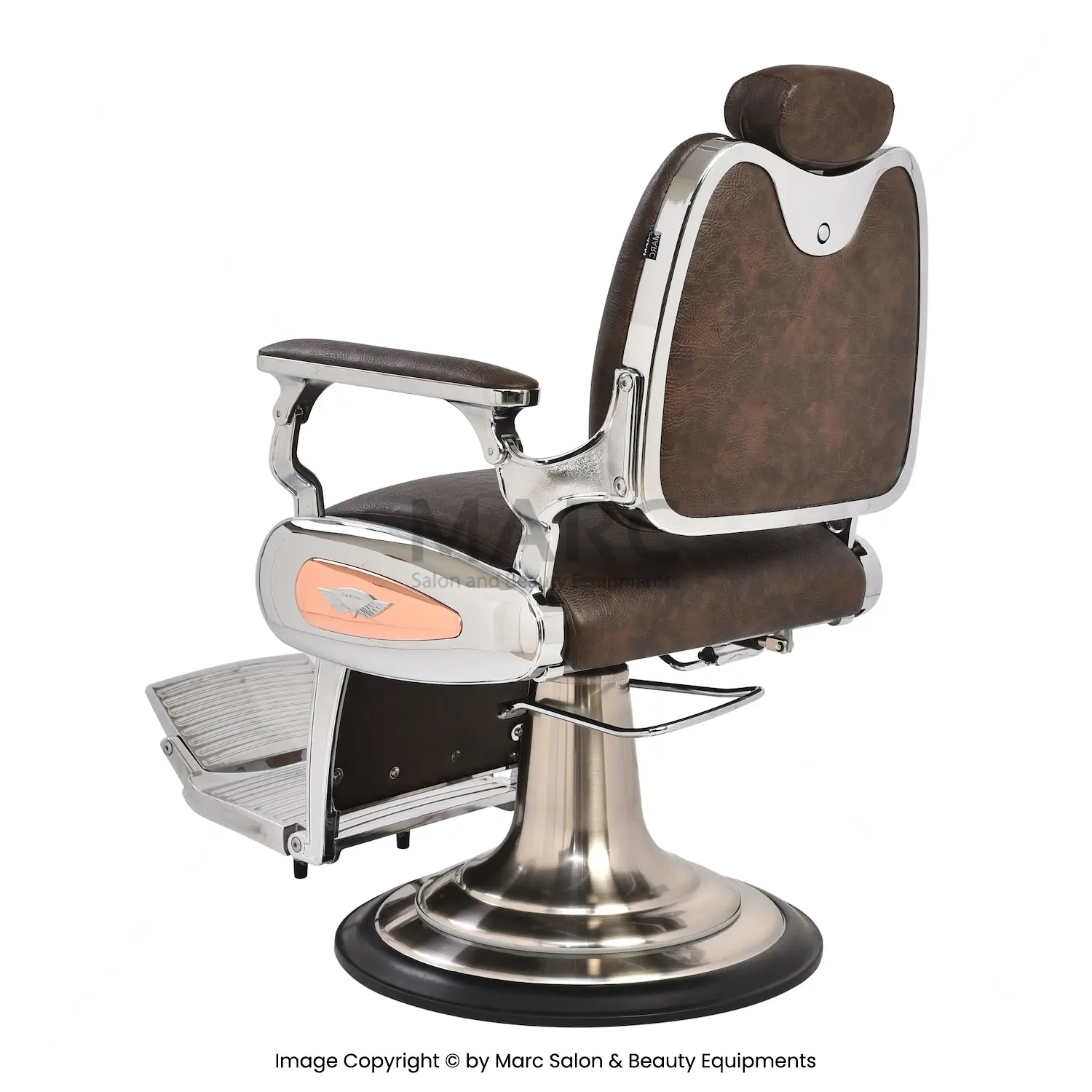 – Reclining Barber Chair with synchronized back and leg lift movement and strong chrome finish metal frame